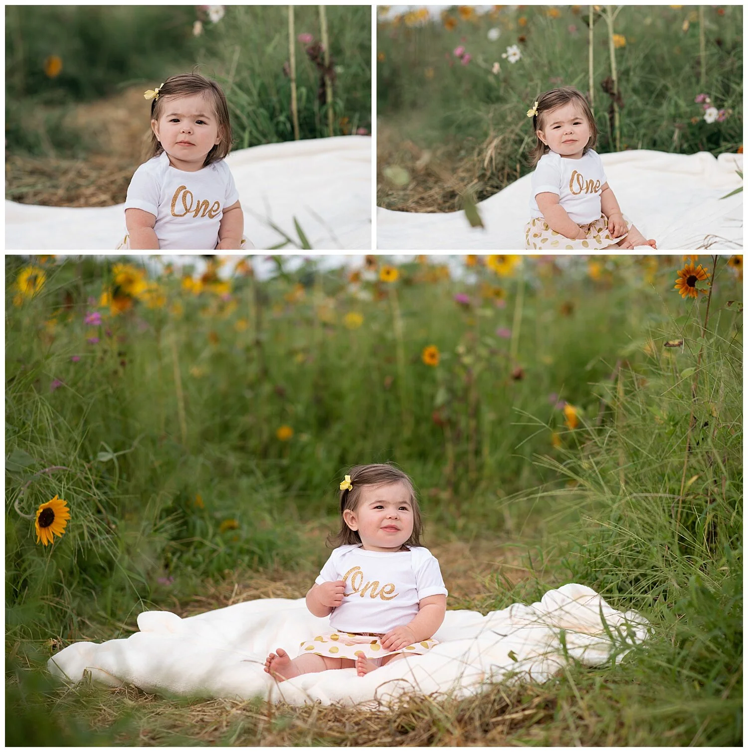 I love the NCMA. It has so much to offer and so much variety. This particular session took place in early fall. They had a field of sunflowers and wildflowers that gave us a great backdrop for images. As with any flowers, as soon as they bloom, the clock is ticking.. so if you are interested in sunflower or wildflower pictures, we have to act fast before they dry out! For cake smash sessions with an outfit change, I always suggest booking at least a 30 minute session. That way there is plenty of time for each set up. If you’d like to get family images during a cake smash session, that is fine too! We started in the flower field and ended by the little bridge. I just love this little girl’s outfit and her cake is so cute!! You never know how babies will react to a cake, especially if they’ve never eaten it before. My daughter wanted nothing to do with it, so just be prepared that yours could also care less about the cake. Luckily, I am always able to get some images before, during, and after the cake that make special memories to commemorate their first birthday! In the end, I’d say she had a good time!